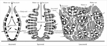 spongocoel, which is lined a simple flat epithelium. Water exits from the spongocoel by way of a